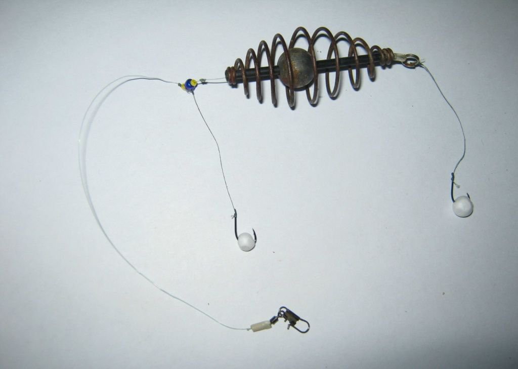 - Фидерная оснастка с кормушкой и крючком на поводке.